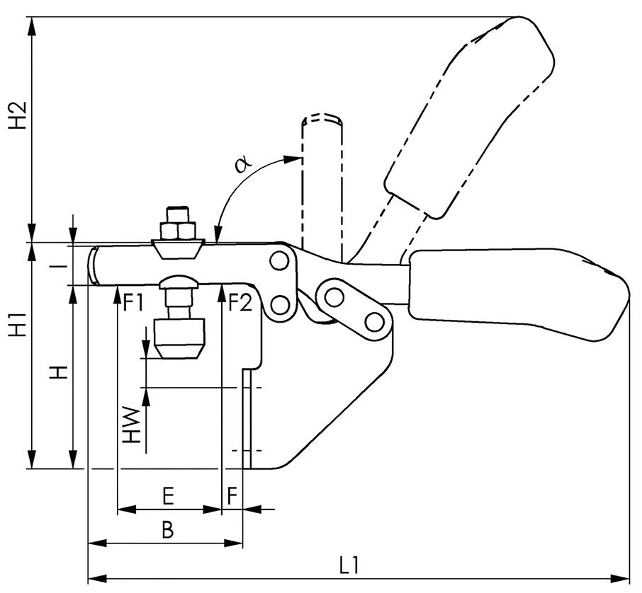 Ausführung: Waagrechtspanner mit offenem Haltearm und waagerechtem Fuß. Verzinkt und passiviert. Die Nieten aus rostfreiem Stahl laufen in einsatzgehärteten Lagerbuchsen, platzbedingt nicht bei den Größen 0 und 1. Lagerstellen gefettet. Ergonomischer, ölbeständiger Handgriff mit großer Handauflage und weicher Komponente. Sicherheits-Spannstück mit Fingerschutz. Verliersicherung für die Andrückschraube am Spannarm-Ende. Anwendung: Zur seitlichen Montage. Lieferumfang: Komplett mit vergüteter, verzinkter Andrückschraube.