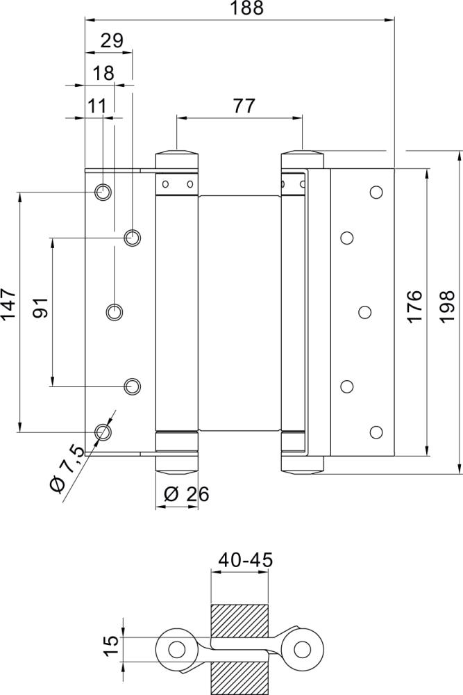 für Türdicke: 40–45 mm