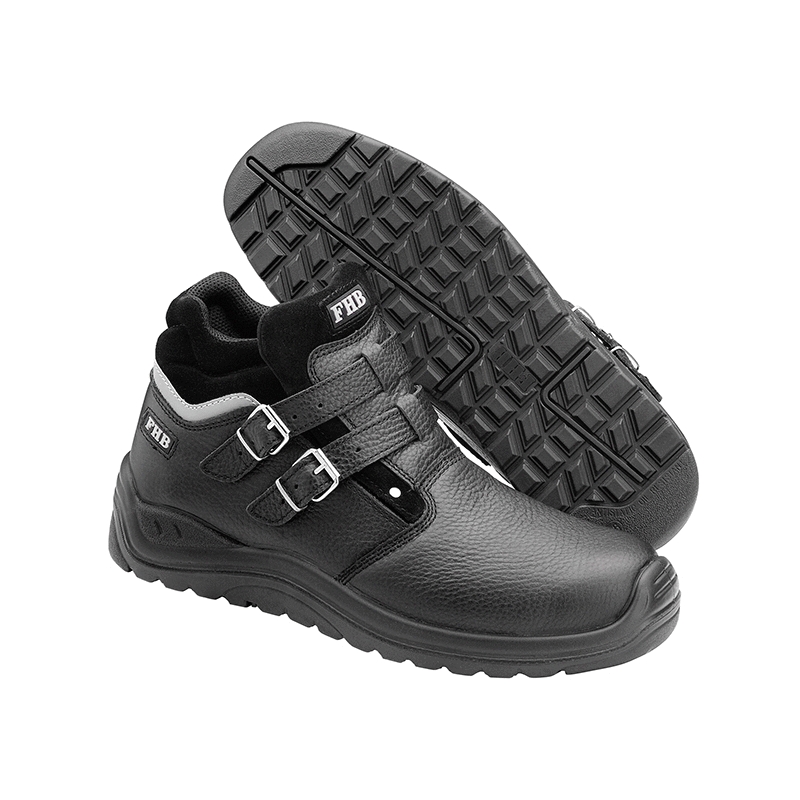 FHB NORBERT S3 Schnallstiefel, Nitril-Langkeilsohle, bis 300°C hitzebeständig, nicht kreidend, textile Sicherheitssohle, Kunstoff-Kappe, Fußweite 11, atmungsaktives Innenfutter und Einlegesohle, EN ISO 20345-S3 HRO