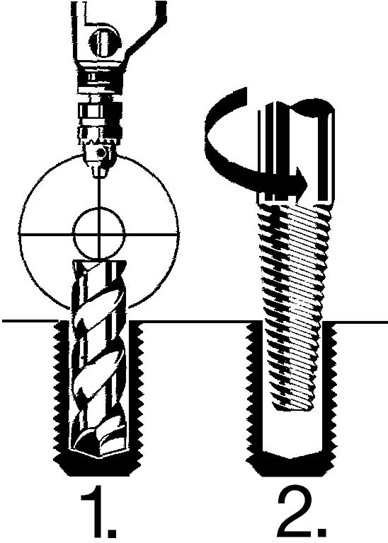 Ausführung: Aus Chrom-Vanadium-Stahl, gehärtet, mit gerolltem Gewinde und feinem Linksdrall. Der Schaft ist geschliffen, mit Vierkant zur Betätigung durch Windeisen oder Werkzeughalter. Anwendung: Zum Entfernen abgebrochener Schrauben mit Rechtsgewinde. Mit dem Spiralbohrer der empfohlenen Größe zentrisch ein Loch in das zu entfernende Stück bohren, den Schraubenausdreher einsetzen und zum Lösen des Reststückes gleichmäßig (nicht ruckartig) in Linksrichtung drehen.