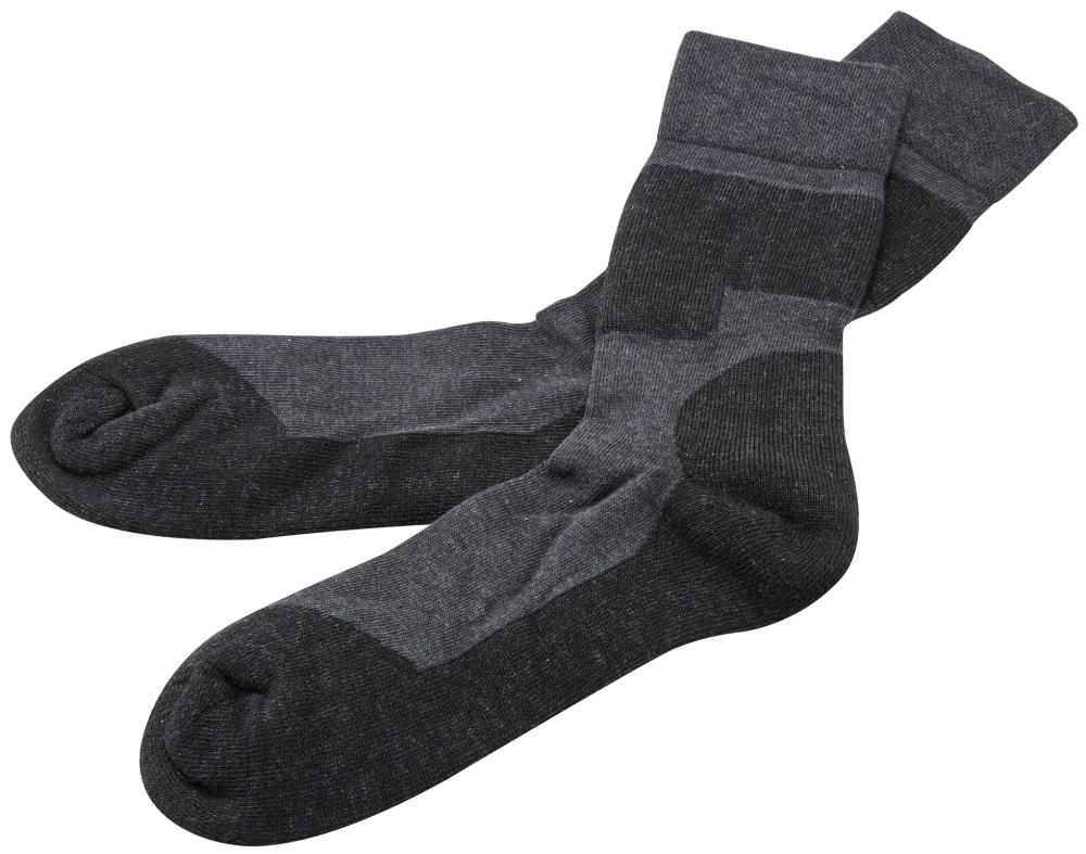Ausführung: Nicht einengend, verrutscht nicht Lange Hochferse sorgt für angenehme Polsterung am hinteren Schuhabschlussrand Verstärkte Frotteesohle mit Baumwolle Überzehenfrottee schützt vor Blasen und Druckstellen Druckmindernde Plüschzonen im Schien- und Wadenbeinbereich Besonders für hohe Stiefel geeignet Material: 60 % Schurwolle, 30 % Baumwolle, 10 % Polyamid Größe: 3941, 4244, 4547 Farbe: schwarz/grau