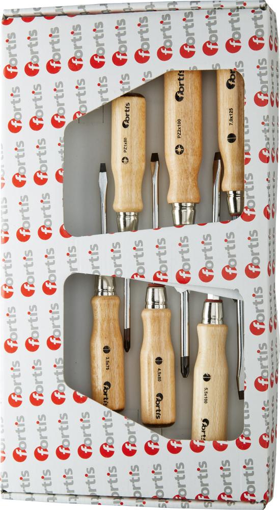 Fortis Schraubendr-SatzHolzheft 6tlg. Schlitz/PZ
