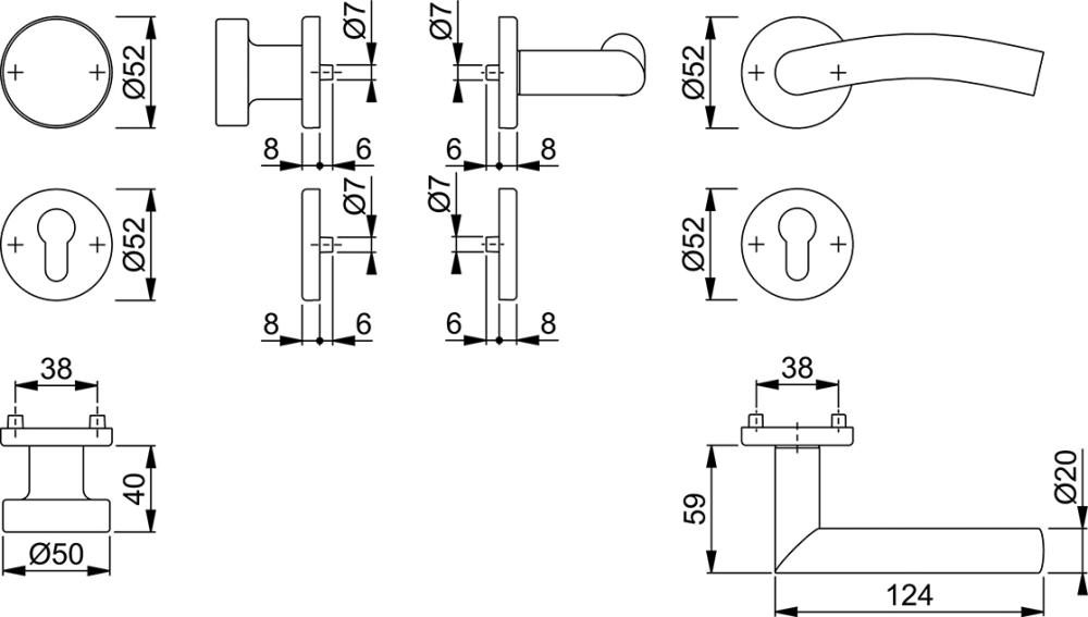 Produktinformationen "Hoppe Wechselgarnitur,m.Ros.,rund,Antwerpen E58/42KV/42KVS/1420Z,PZ,VK8,DIN Rechts,F69"