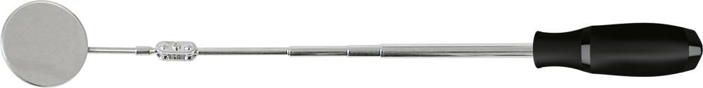 Ausführung: Spiegelgehäuse aus Stahl mit Metalleinfassung, verchromtes Teleskoprohr und Komfort-Kunststoffgriff.