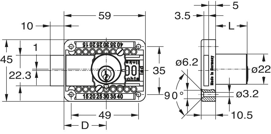 Mit Zylinder Kasten Metall vernickelt 2 Schlüssel, 1 Rosette Einstellbar von 1540 mm bis Mitte Umstellbar auf rechts, links, unten (lad) und oben (Kappe)