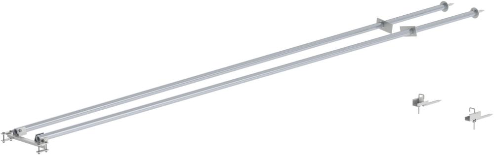 Absolut sicherer Stand bei allen Baumarbeiten Zum Anbau an Anlege- und Schiebeleitern. Werksseitiger Anbau gegen Mehrpreis. 2 Rohrstützen mit Schraubverbindung zur Anbringung an der Leitersprosse. 2 Gurtbänder zur Sicherung. 1 Satz Erdspitzen für die Leiter.