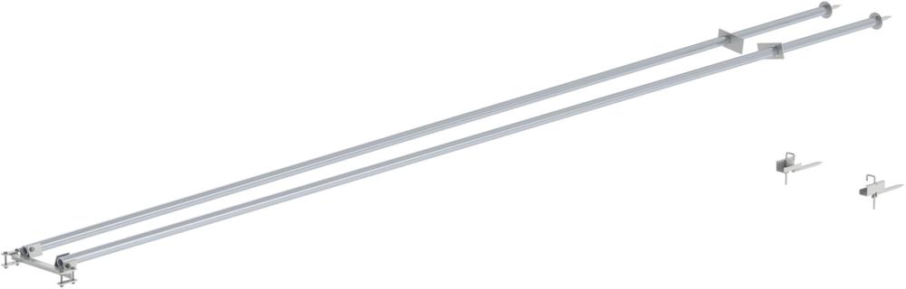Absolut sicherer Stand bei allen Baumarbeiten Zum Anbau an Anlege- und Schiebeleitern. Werksseitiger Anbau gegen Mehrpreis. 2 Rohrstützen mit Schraubverbindung zur Anbringung an der Leitersprosse. 2 Gurtbänder zur Sicherung. 1 Satz Erdspitzen für die Leiter.