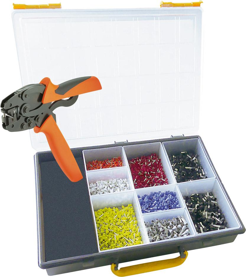 Satzinhalt: 1 Crimpzange PZ 6 roto L je 500 Aderendhülsen 0,5; 0,75; 2,5; 4; 6 mm² je 1000 Aderendhülsen 1; 1,5 mm²