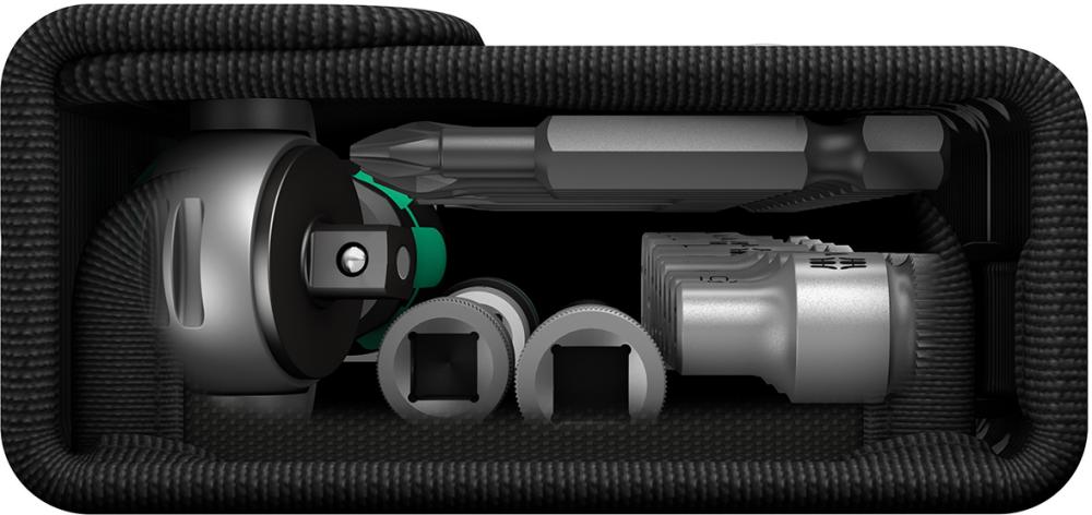 Satzinhalt: 1 Zyklop Speed-Knarre 9 Sechskant-Steckschlüssel-Einsätze 5; 5,5; 6; 7; 8; 10; 11; 12; 13 mm 3 Bits für Kreuzschlitz PH 1; 2; 3 2 Bits für Kreuzschlitz PZ 1; 2 4 Bits für Innensechskant 3; 4; 5; 6 mm 6 Bits für Innen-TORX® T 10; 15; 20; 25; 27; 30 1 Wobble-Verlängerung 56 mm 1 Verlängerung mit Schnelldrehhülse 150 mm 1 Bit-Adapter für 1/4"-Bits