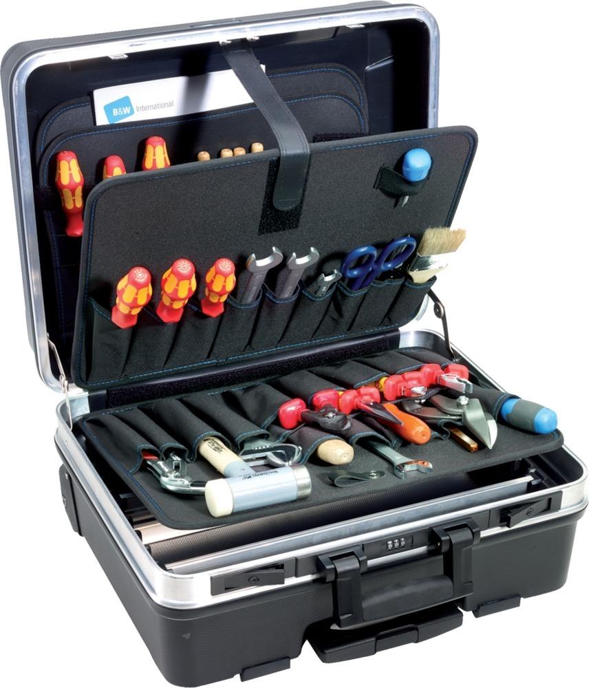Werkzeugtafel mit 9 Einsteckfächern auf der Vorder- und 13 Einsteckfächern auf der Rückseite