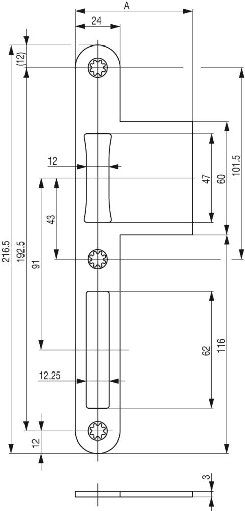 Produktinformationen "BKS Lappenschließblech, B-90000, Edelstahl, 24/62,5mm rund, DIN Links, edelst., niro"