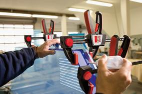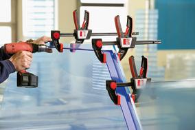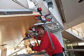 Ausführung: Gleitschiene aus Spezialstahl, Festbügel und Gleitbügel aus schlag- und bruchfestem Polyamid. Der Festbügel kann ohne Werkzeug schnell und einfach von Spannen auf Spreizen umgebaut werden. Mit weichen Schutzkappen und hinter der Schiene angebrachtem 2-Komponenten-Kunststoffgriff. Anwendung: Für Spannkräfte bis 2 kN einsetzbar. Komfortable Lösung für Situationen, in denen nur eine Hand frei ist. Auch für Überkopfarbeiten geeignet.