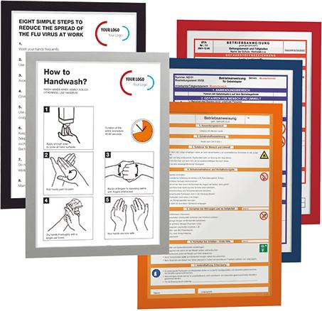 Mit aufklappbarer magnetischer Vorderseite Format: DIN A4 Doppelseitige Lesbarkeit an Glasflächen durch 2 Einlagen Identische Optik des Rahmens von beiden Seiten Anwendbar im Hoch- und Querformat Für Dokumente in A4 wie z. B. Raumkennzeichnungen, Orientierungsinformationen und Angebote Hinweis: Schnelles Einlegen und Auswechseln von Dokumenten durch aufklappbaren Magnetrahmen.