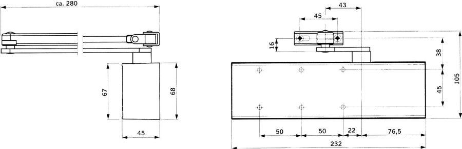 Zahntrieb-Türschließer für die Standardtür, einstellbare Schließkraft und Schließgeschwindigkeit, regulierbarer Endanschlag, DIN links und DIN rechts verwendbar, für Türbreiten bis 1100 mm. EN 24 nach DIN EN 1154.