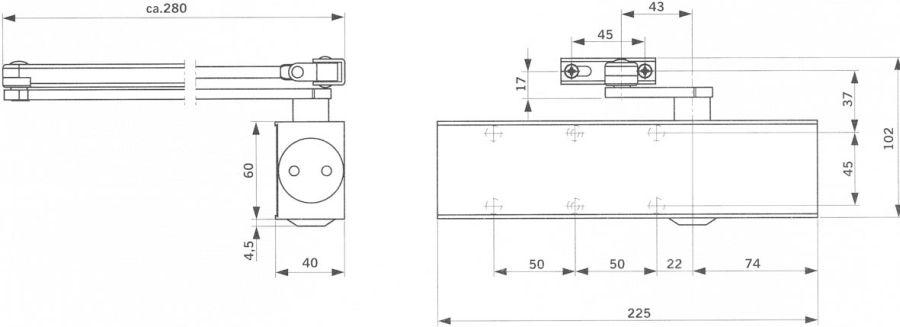 Komfort-Zahntrieb-Türschließer nach DIN EN 1154, Teil 2; einstellbare Schließgeschwindigkeit, einstellbarer Endanschlag und Öffnungsdämpfung. Geeignet für DIN links und DIN rechts Türen bis 1100 mm Breite. EN 24.