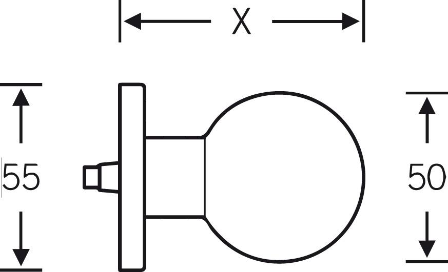 Aluminium-Türknopf, rund, Ø 50 mm, auf runder Rosette, Ø 55 mm, nicht sichtbare Befestigung. X = 77 mm.