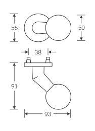 Aluminium-Türknopf, gekröpft, rund, Ø 50 mm, auf runder Rosette, Ø 55 mm, nicht sichtbare Befestigung.