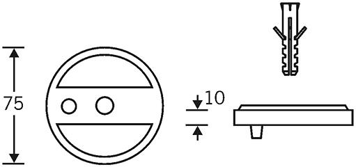 Durchmesser Unterlegplatte: 75 mm, Höhe 10 mm.