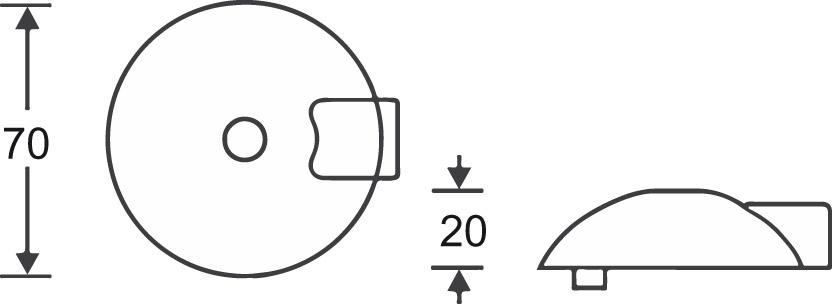 Durchmesser Türpuffer: 70 mm, Höhe 20 mm.
