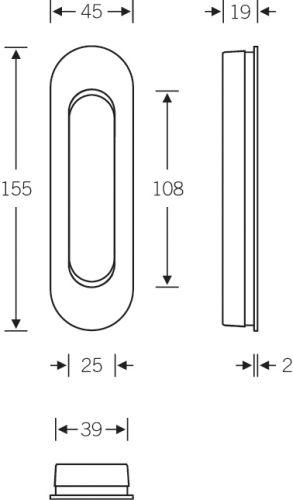 Für Schiebetüren, aus Aluminium, oval, Ausfräsung 150 x R 20 x 17,5 mm, ohne Lochung.