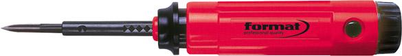 Satzinhalt: 1 Universal-Kunststoffgriff EL 1000 FT 1 Klingenhalter EL 0602 FT mit Innengewinde (NF 10) 1 austauschbare Dreikantklinge FT T40 mit Außengewinde 1 Schutzkappe