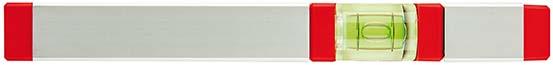 Ausführung: Aus silberfarbig eloxiertem und dickwandigem Aluminium. Mit einer runden Horizontal- und einer Vertikallibelle, durch Lupeneffekt auch bei schlechten Lichtverhältnissen gut ablesbar. Mit stoßdämpfenden, unzerbrechlichen Endkappen und einem haftstarken Magneten. Messgenauigkeit in Normal- und Umschlag-Position 0,5 mm/m. Anwendung: Für horizontale und vertikale Normal- und Umschlagmessungen geeignet, besonders bei beengten Platzverhältnissen.