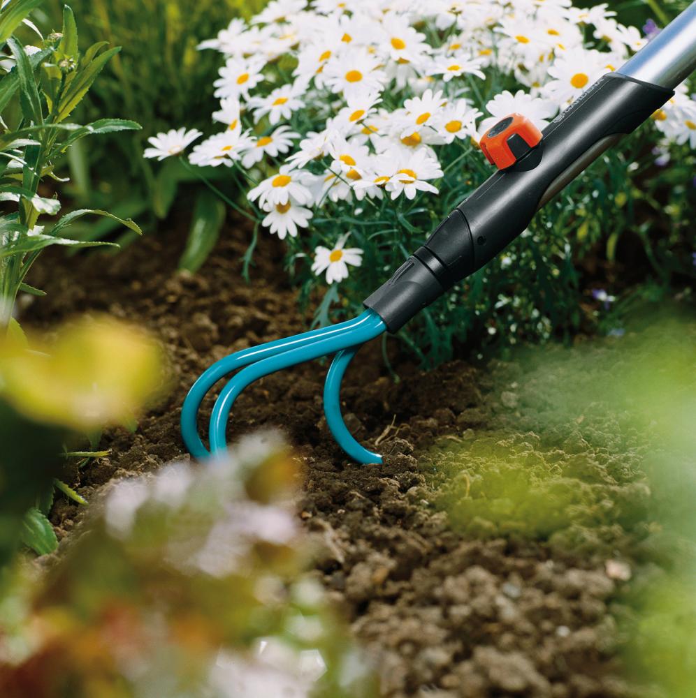 Für wurzelschonendes Lockern und Lüften des Bodens. Bestens geeignet für steinige Böden und engstehende Kulturen. .
