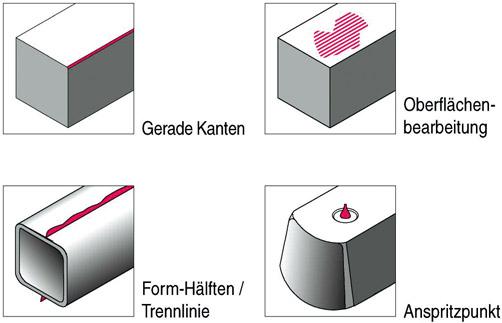 Ausführung: Die Keramicut-Entgrater sind das ideale Werkzeug für die Entgratprobleme bei Kunststoff- und Leichtmetallwerkstücken. Hierzu ergeben sich folgende Vorteile: 1. Durch die superharte Keramikklinge werden Kunststoffe und andere weiche Materialien problemlos entgratet. 2. Durch die verschleißfeste und stabile Keramikklinge besitzt das Werkzeug eine lange Lebensdauer. 3. Durch die ballige Schneide (r = 250 mm) wird ein beschädigungsfreies Arbeiten ohne Ausschuss ermöglicht. 4. Durch den stumpfen 90°-Schneidenwinkel besteht keine Verletzungsgefahr. Anwendung: Für punktgenaues Entfernen von Material an Kunststoff- und Leichtmetallwerkstücken. Die Klinge an die Entgratstelle unter einem Winkel von 60°80° ansetzen und mit einer kontinuierlichen Bewegung über das Werkstück ziehen. Nicht zu viel Druck ausüben.