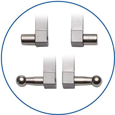 Genauigkeit nach Werksnorm Aus rostfreiem Stahl LCD-Anzeige 7,5 mm Für Innen- und Außenmessungen Anpassbar an problematischen Messstellen durch Messeinsätze mit Gewinde M2,5 Ein- und Ausschaltung Nullpunktstellung an jeder Position Lieferung: Im Holzetui mit Einstelllehre, Kugeleinsätzen Ø 5,0 mm, Planeinsätzen Ø 4,8 mm und Batterie CR2032.