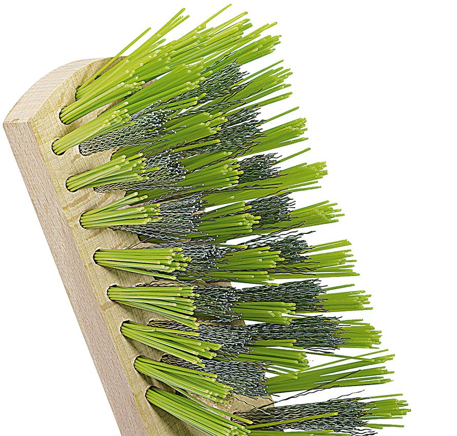 Besonders robuste Ausführung Ideal zur Entfernung von hartnäckigen Verschmutzungen, z. B. Terrassenplatten oder Steinböden. Mit Stahldrahteinlage. Stielhalter: passend für Stiele von Ø 22 bis 28 mm. Zusätzliche Fixierungs-Lamellen umgreifen und fixieren jede Stielart.