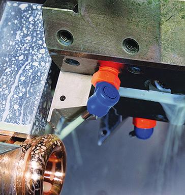 Ausführung: Gehäuse aus hochwertigem Kunststoffgranulat. Bietet einen großen Schwenkbereich von 110 bzw. 102° , strahlt auch unter die Einschraubebene. Für eine genaue Kühlmittelversorgung lässt sich die Düse um 360° drehen. Mit einem Innensechskantschlüssel oder dem beiliegenden Einstellschlüssel (Bestell-Nr. 9600 0500) kann die Düsen eingestellt werden und bleibt ohne Gegenmutter positionsstabil. Anwendung: Schnelle Bearbeitung bei der Zerspanung mit hohen Drehzahlen durch Hochdruckkühlung bis 70 bar.