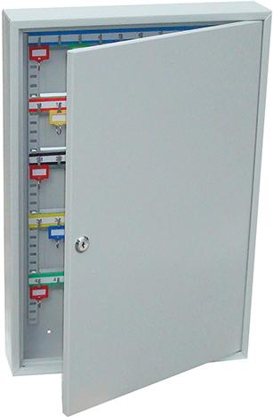 Übersichtliche Aufbewahrung Robuster Korpus mit einwandiger Tür. Verzinkte Stahlblechausführung mit Zylinderschloss, inkl. 2 Schlüsseln. Schwenkbares Schlüsselregister Mit fortlaufend nummerierten Hakenleisten und verstellbarem Rastersystem. Serienmäßig mit Schlüsselanhängern und Nummerierungsaufkleber. Zur einfachen Wandmontage Farbe Pulverbeschichtet RAL 7035 lichtgrau.
