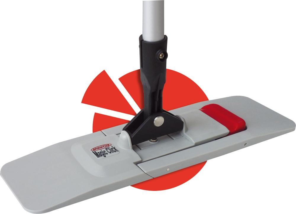 Patentierte Aufrechtfunktion Auf 1000 Rasterungen getestet. Leichtgängiges Drehgelenk für einfaches Schwenken in jede Richtung und jede Neigung. Schnellverschluss zur einfachen Höhenverstellung. Hervorragende Verarbeitungsqualität Starker Magnetverschluss mit 5 kg Schließkraft und automatischer Verriegelung. Stiel und Halter werden mit einer Edelstahlschraube fixiert. Mit dem großen 2-Stufen-Fußtaster lässt sich der Klapphalter einfach öffnen. Optimal ausbalanciertes Eigengewicht garantiert perfekte Laufeigenschaften und ein ermüdungsfreies Arbeiten. Wahlweise in 400 oder 500 mm Breite. Lieferumfang Magnetklapphalter Magic Click mit patentierter Aufrechtfunktion. Alu-Teleskopstiel. Mikrofasermopp Premium".